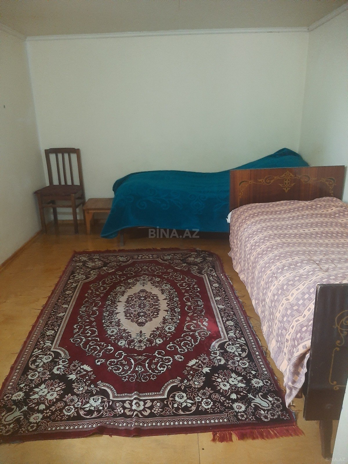 Kirayə verilən otaq - Geniş, işıqlı otaq: iki böyük pəncərə, hündür tavan - Döşəmədə xalçalar, otaqda taxta stol və stul, tək nəfərlik çarpayı - Sadə mətbəx guşəsi: əl-üz yumaq üçün kiçik lavabo və dolab - İşıqlandırma üçün tavan lampası - Daxildə şkaf/komod tipli iş masası - Möhkəm metal giriş qapısı - Taxta döşəmə, divarlarda yaşıl boya - Elektrik rozetkaları və su kranı mövcuddur Tənha yaşayış və ya iş otağı kimi istifadəyə uyğundur. Minimal mebellə təmin olunub, sadə və funksional planlanma. Vasitəçi haqqı razılaşma yolu ilə