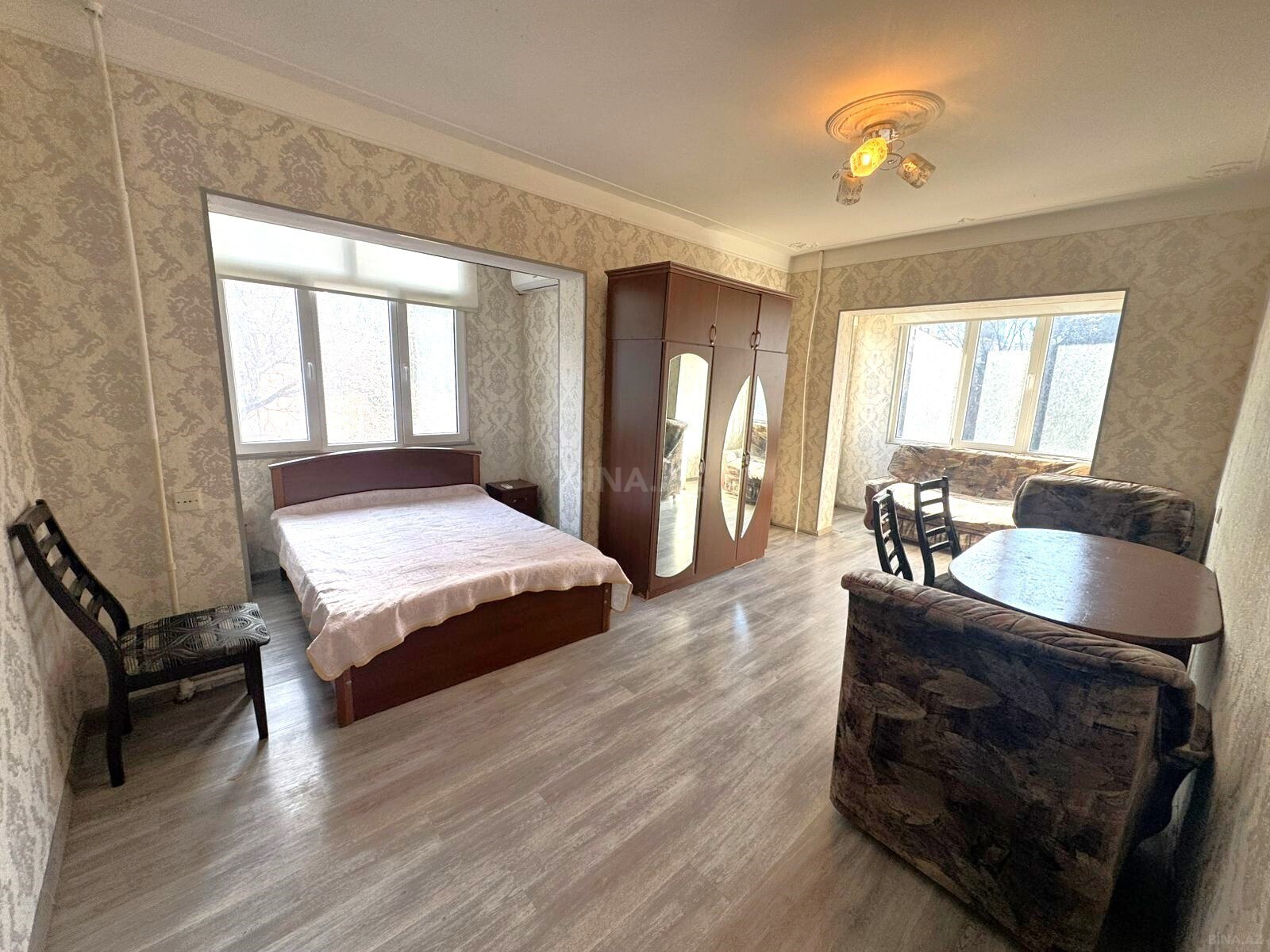 m."N.Narimanov"-n yaninda.Temiri normal.Pol laminat.Merkezi istiliq.Evde var:Divan,sifoner,2kreslo,j/stol,stol.TV,xol.,paltar yuyan masin,split kond,KTV,Internet.Kuxna mebeli.San.qovsaqi bir yerde,Dus,avtomat kolonka.Qaz,isiq,su-daimi.Ofis kimide verile biler.