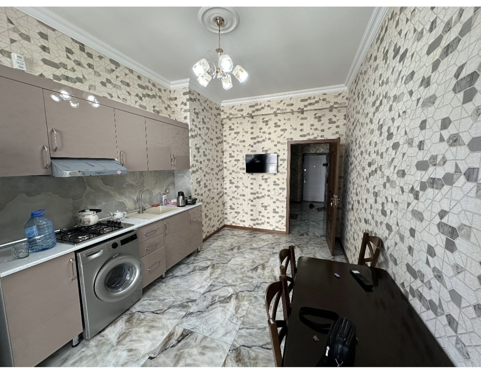1 otaqdır əşyalıdır. Hər bir əşya var, mətbəx köhnə şəkildir. Soyuducu, paltaryuyan stol-stul, kondisoner, divan, mebeli var. TV olmayacaq.