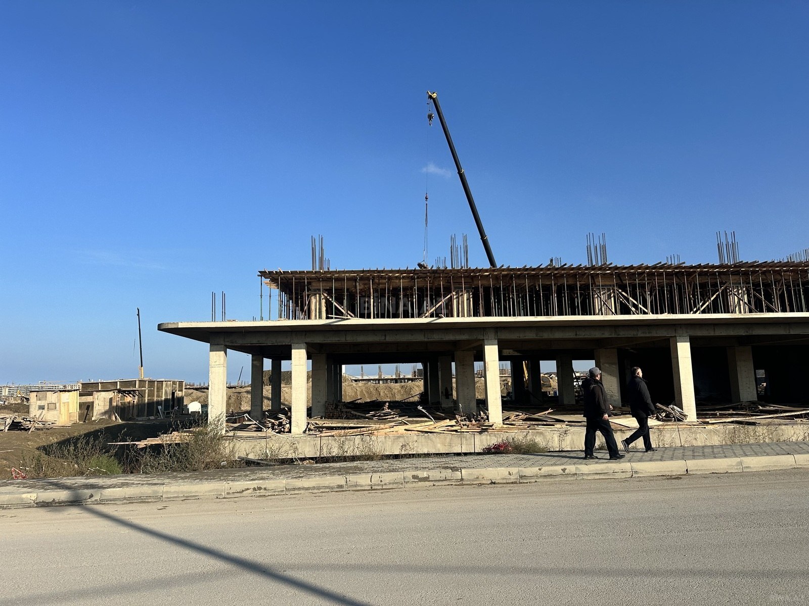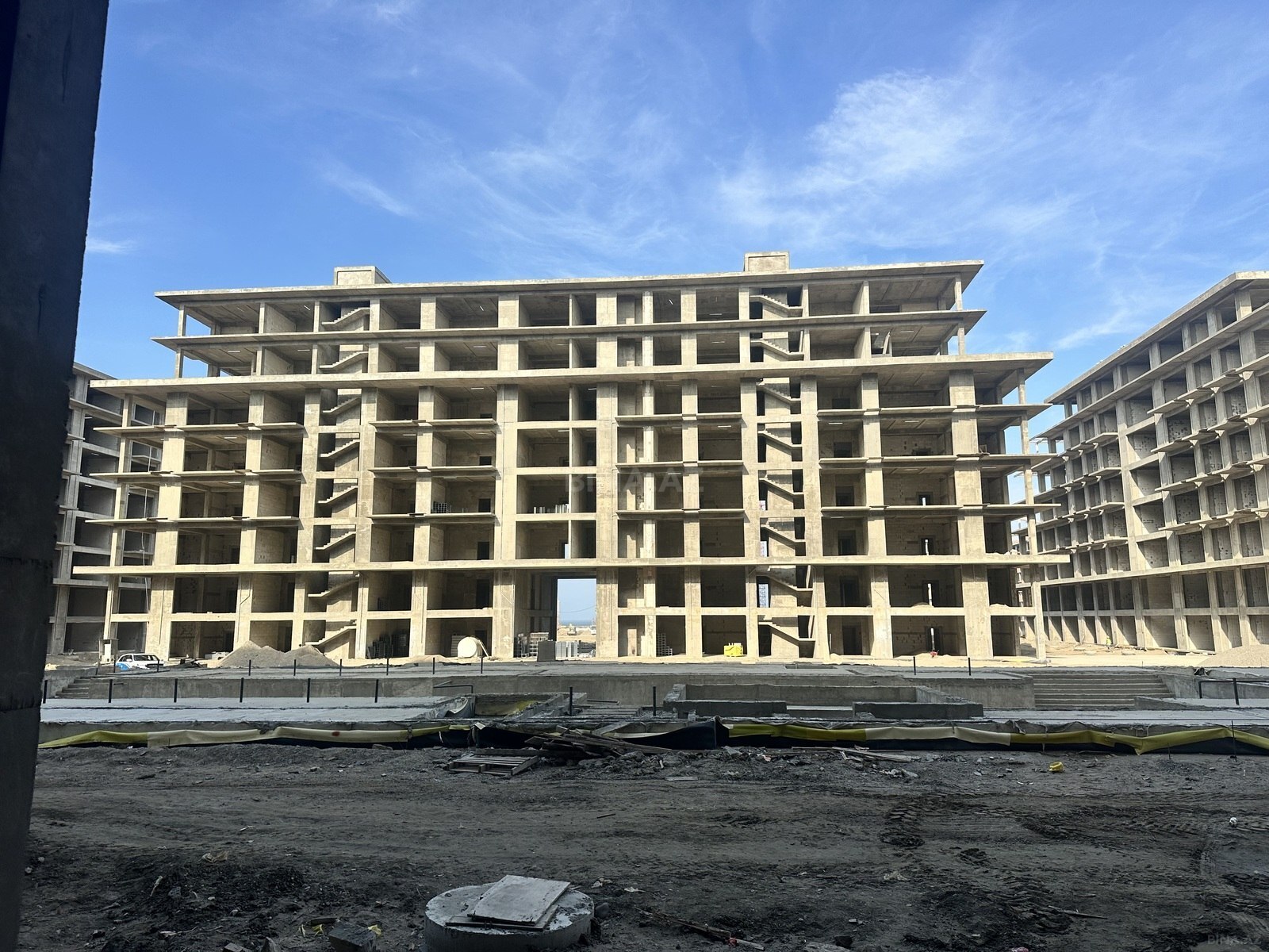 Tikinti sürətlə davam edir: bina artıq hazırdır, fasad işlərinə və pəncərələrin quraşdırılmasına başlanılıb.