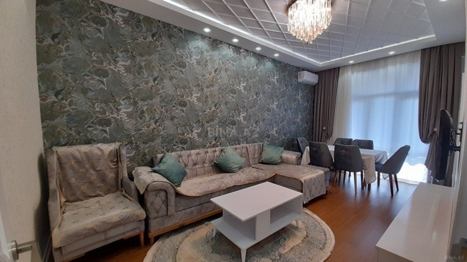 90 kv.m, 2 otaqlı, tam super təmirli və tam əşyalı mənzil