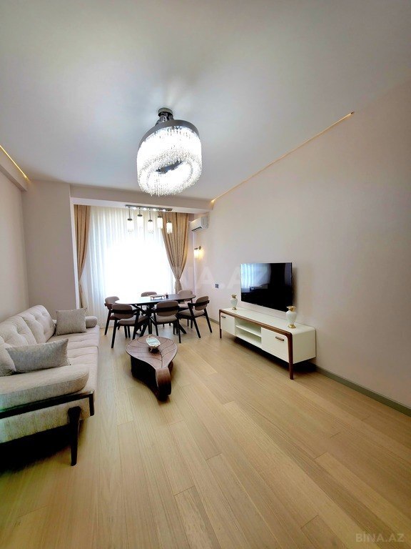 Mənzil 18 mərtəbəli binanın 13-cü mərtəbəsində yerləşir. Ümumi sahəsi 90 kv.m. olan 2 otaqlı mənzil qonaq otağı, yataq otağı, mətbəx, hamam otağı və balkondan ibarətdir. Balkondan Səməd Vurğun küçəsinə mənzərə açılır. Mənzil təzə təmir olunub. Mənzil tam mebel və məişət texnikası ilə təchiz olunub: 2 kondisioner, 2 televizor, soyuducu, paltaryuyan və quruducu maşın, qabyuyan, quraşdırılmış soba və mikrodalğalı soba, kombi sistemi, isti döşəmələr.