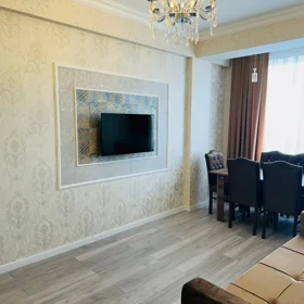 Mənzil 2 otaqlı, 90 kv.m, əla təmirli və genişdir. Mənzildə yaşamaq üçün bütün şərait yaradılıb: qaz və su sayğacları, isti su, kombi sistemi, kondisioner mövcuddur. Bütün mebel və elektron avadanlıqlarla tam təmin olunub. İnternet var. Avadanlıqlar tamamilə yenidir. Mənzildə 2 televizor, paltaryuyan və qabyuyan maşın mövcuddur.