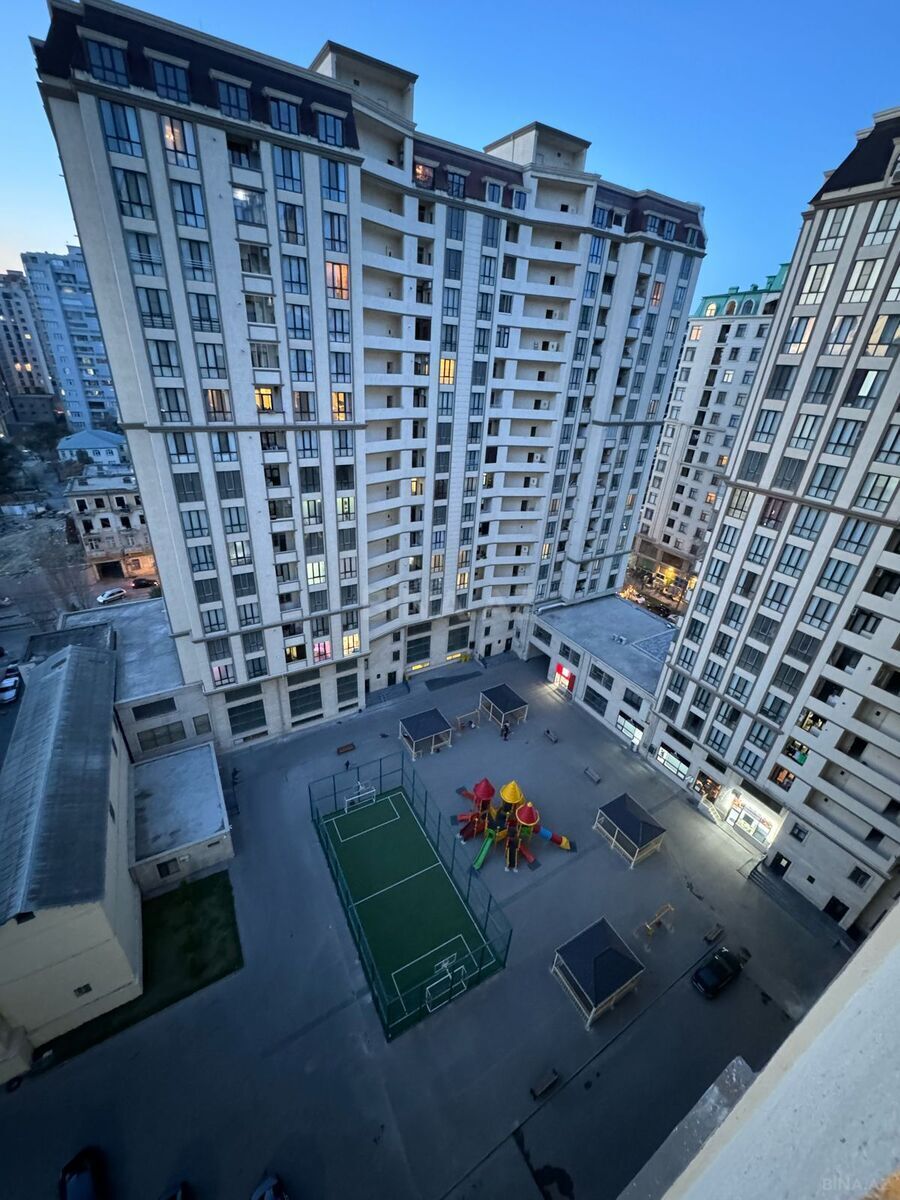 Binanın qapalı qorunan həyəti, uşaq oyun meydançası, yeraltı parkinqi var