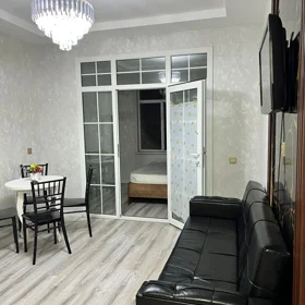 7/6 mərtəbəsi 60 kv.m 2 otaq studio əla təmir əşyalı mənzil kirayə təklif olunur