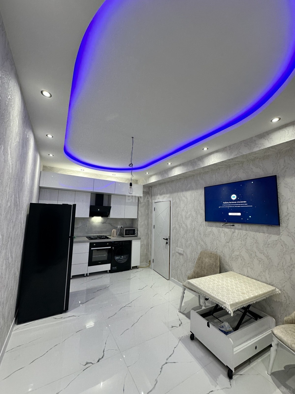 Mətbəx tam avadanlıqlıdır. Mənzildə sürətli internet, kondisioner, smart TV, paltaryuyan, qabyuyan və digər bütün əsas məişət texnikası var. Heç bir əlavə əşya gətirməyə ehtiyac yoxdur, yaşayış üçün lazım olan hər şey təmin olunub.