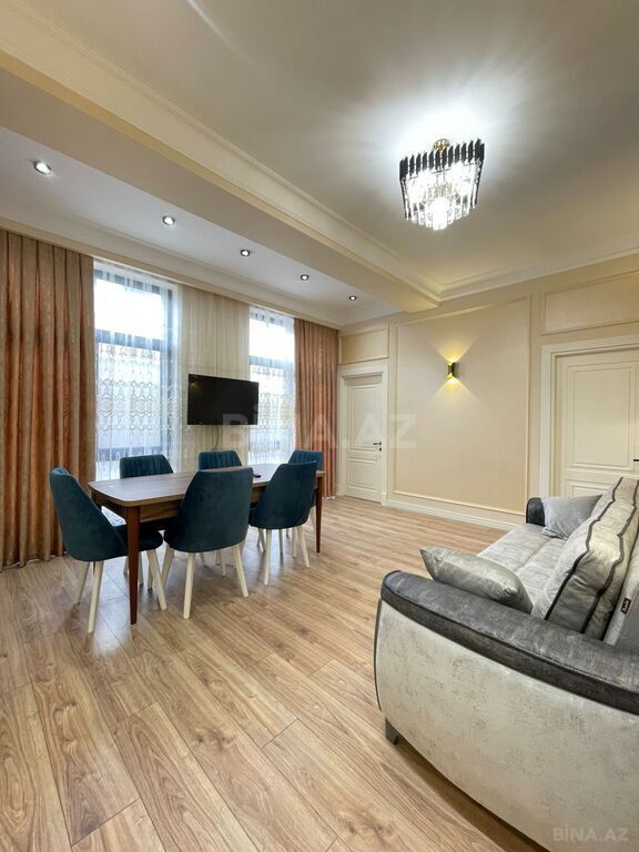 В новом доме, рядом с комплексами “Yeni Həyat” и “Azure”, на 8-м этаже 17-этажного здания. Площадь – 113 кв.м. Квартира после евроремонта, без проживания, полностью меблирована и укомплектована техникой.