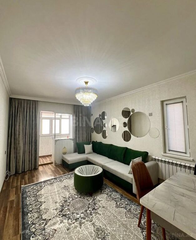 Nesimi rayonu Həsən Əliyev keçmiş İnqilabda, Kimyaçılar şəhərciyində (ximqorodok) adlanan erazide 9 mərtəbəli Kiyev layiheli binanın 2-ci mərtəbəsində, yelçəkən, orta blok, təmirli mənzil satılir. Mənzilin polu bahalı parketdir. Mənzilin isitmə sistemi mərkəzidir. Katelni yaxında olduğuna görə mənzilin istilik sistemi mükəmməldir. Su daimi gəlir. Bina ipotekaya yararlıdır. Binanın həyəti çox sakit və səliqəlidir. Həyətdə avtomobil parklanması üçün şərait var. Tibb universtetinə, 8 Noyabr və 20 Yanvar metrosuna 5 dəqiqəlik məsafədədir.