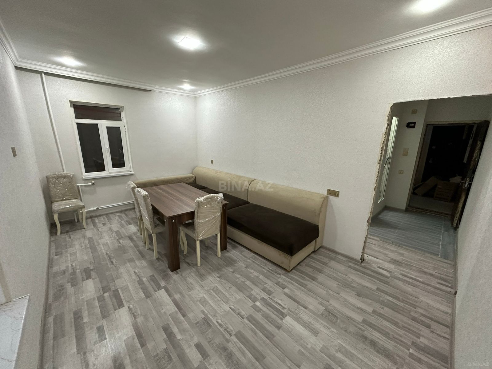 -Qaz, su, işıq daimidi, istilik sistemi mərkəzidir.Döşəməsi parketdir..