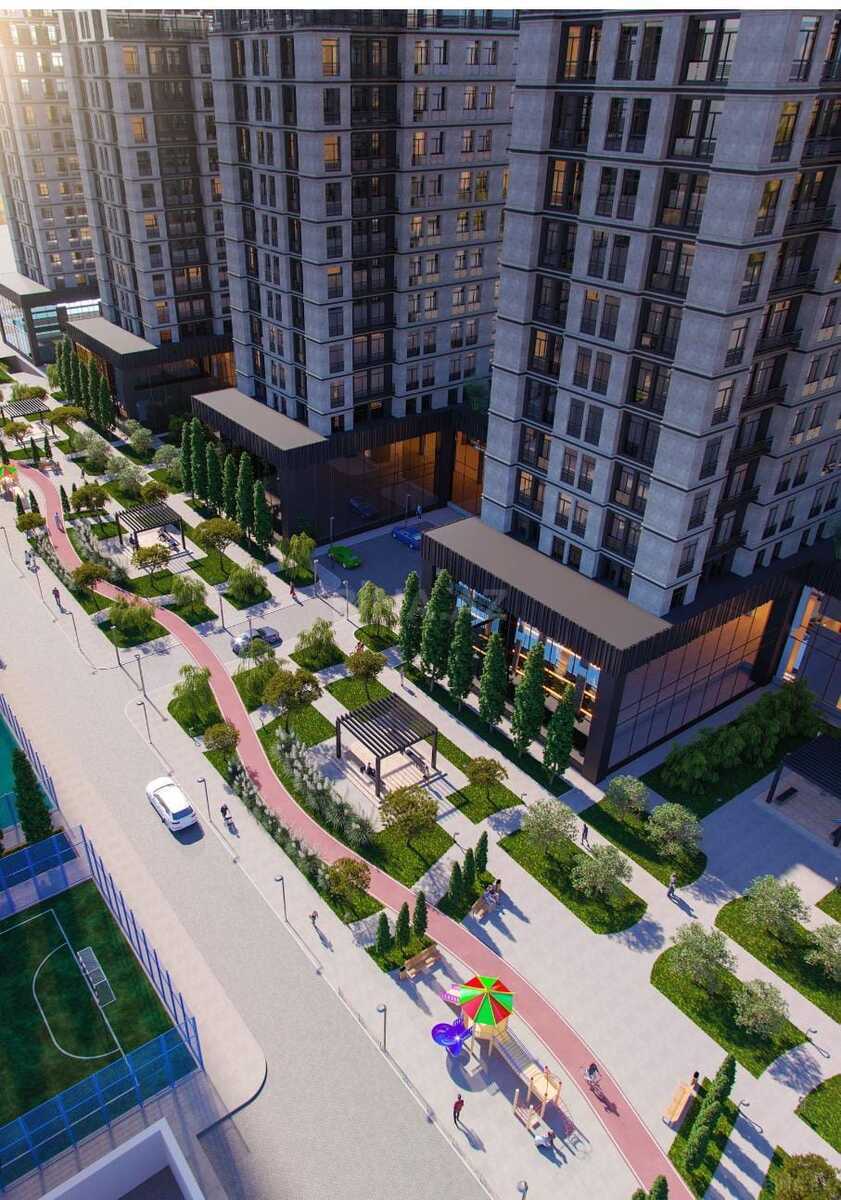 • Özəl hovuz, uşaq meydançası, piyada və velosiped yolları