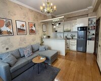 Mənzil tam təmirli, 6/12 mərtəbədə yerləşir. Daimi su, qaz, kombi sistemi, jakuzi və iki sanitar qovşağı var. Döşəmə parketdir, fiıstıq qapılar, iki balkon.