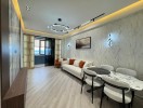Mənzil tam əşyalıdır — bütün mebel və məişət texnikası qiymətə daxildir və interyerin ümumi konsepsiyasına uyğun seçilib. Mənzil çox işıqlıdır, geniş pəncərələri, şəhərə möhtəşəm mənzərəsi olan rahat balkonu var.