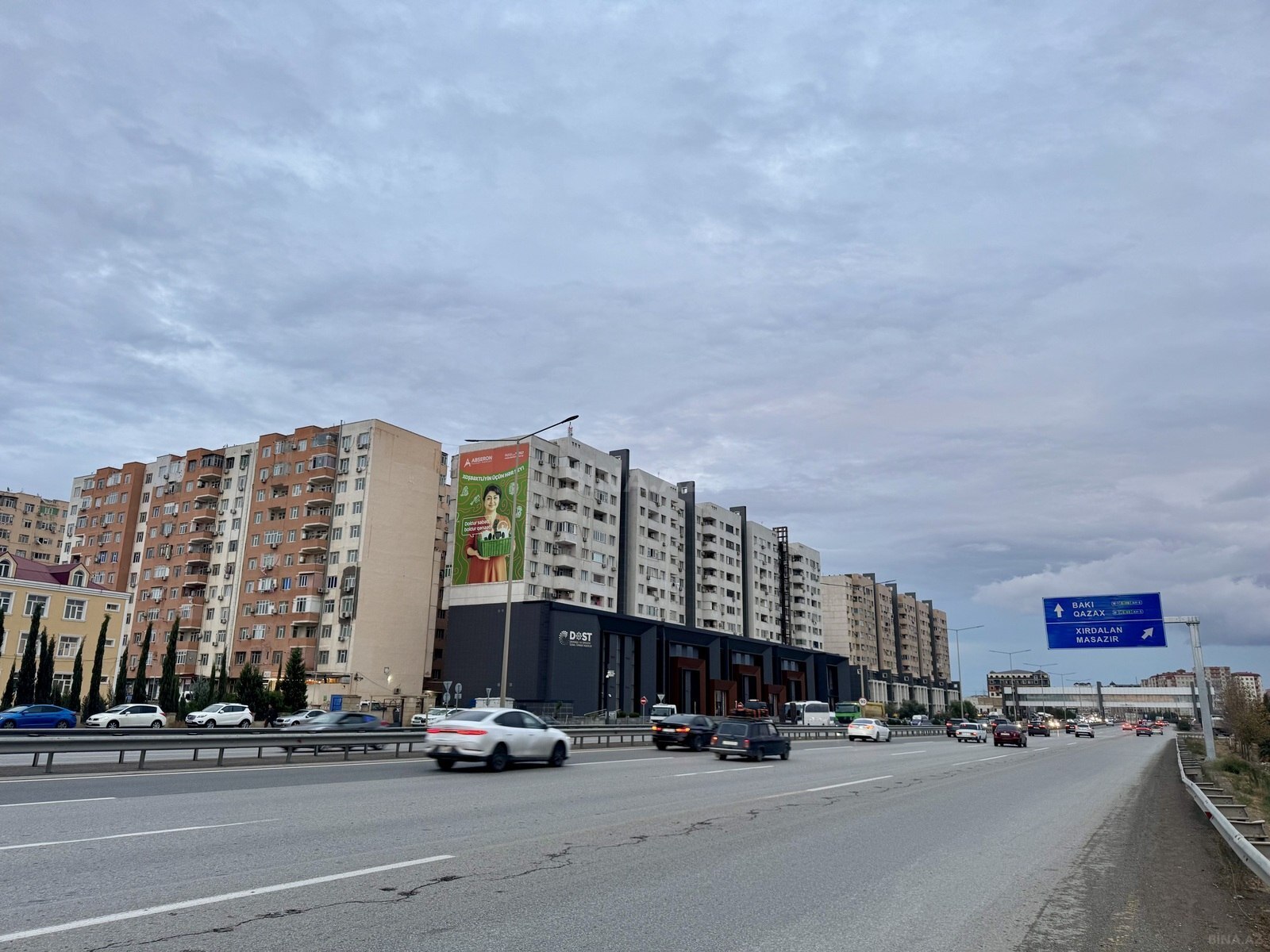 Abşeron Gənclər Şəhərciyi ,Ər-Riyad ticarət mərkəzi ilə üzbəüz.