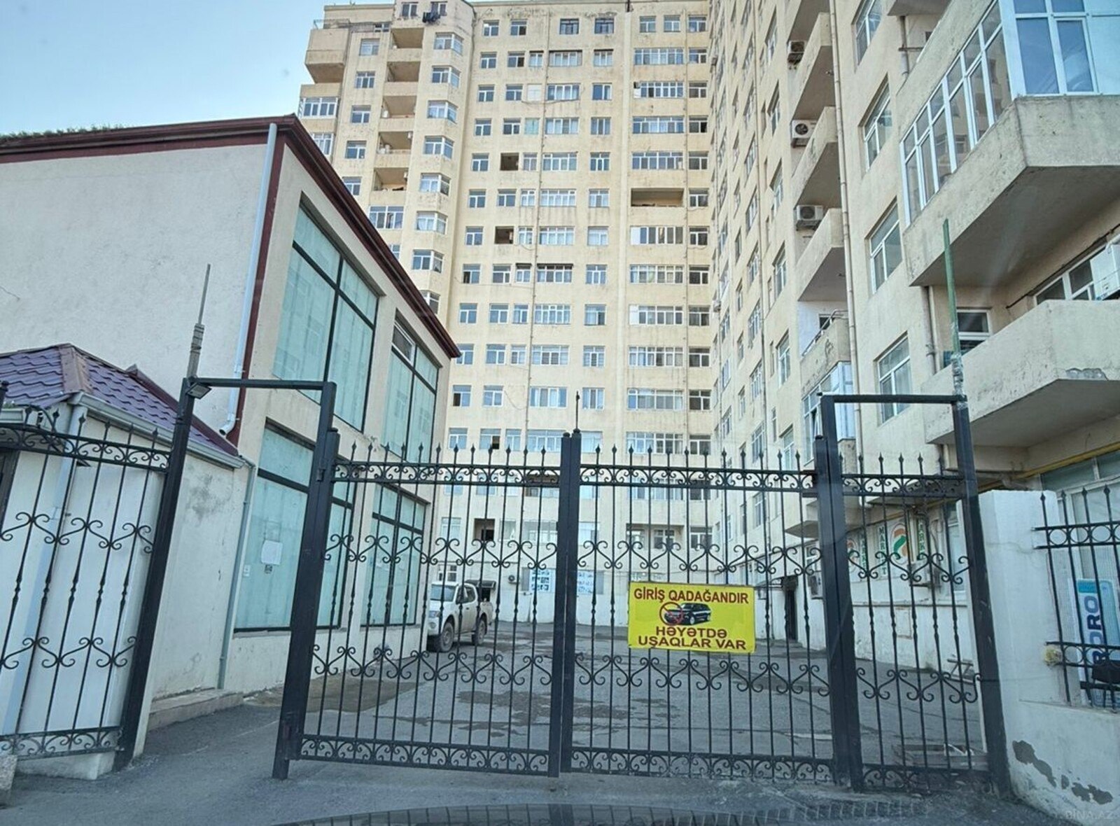 Bina mühafizə olunur, həyət səliqəlidir, avtomobil üçün dayanacaq mövcuddur