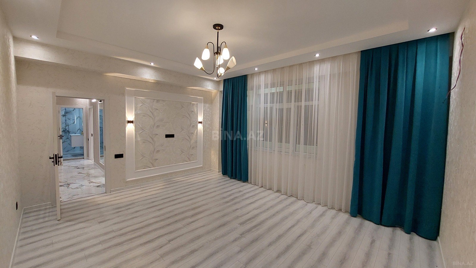 Masazir esas yoldan 200 metr iceride, “QURTULUS - 93” yasayis kompleksi, BRAVO yani, umumi sahesi 78 kv m olan qanuni – 2 otaqli menzil satilir. Mertebe 6/5, super temir, metbex mebeli, kondisioner, 2 eyvani (aciq ve bagli), qarderob otagi, suyu, isigi daimidir, merkezi istilik sistemi. Butun senedler qaydasindadir.Kupca. CİXARİSH var. Genish – sakit heyeti, avtobus dayanaqi .ushaq meydancasi,stadion, mekteb, usaq baxcasi, marketler ve diger iase xidmeti obyektleri yasayis kompleksin erazisinde yerlesir. real mushterie endirim olunacaq. Alqi satqi zamani ,menzilin acari , yeni sahibine verilecek.