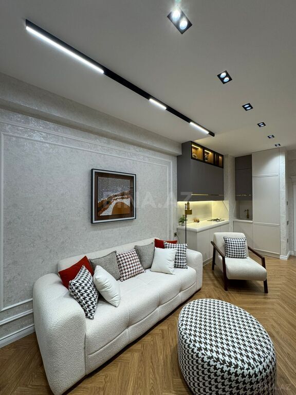 Elimler metrosuna yaxin Reanans Palasda 2 otaqli studya menzil satilir temir yuksek veziyetde yer dosemesi parket isdi pol sened cixaris ipotekaya yararli