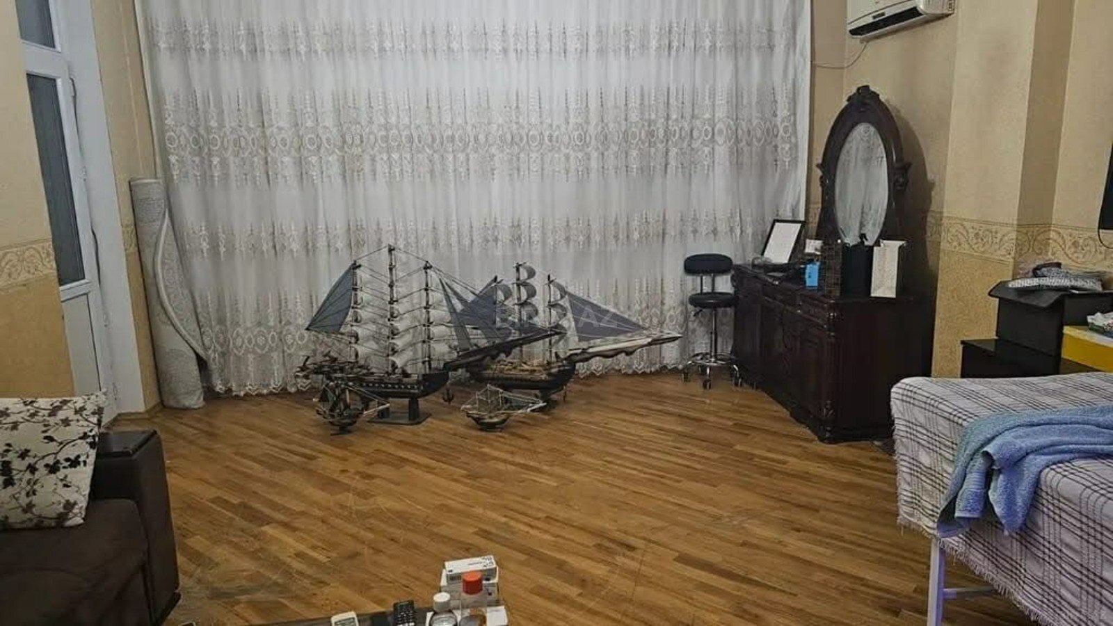 Evdə tv,kondisioner,yataq dəsti,divan,soyuducu,paltar yuyan,kombi və s əşyalar movcuddur.