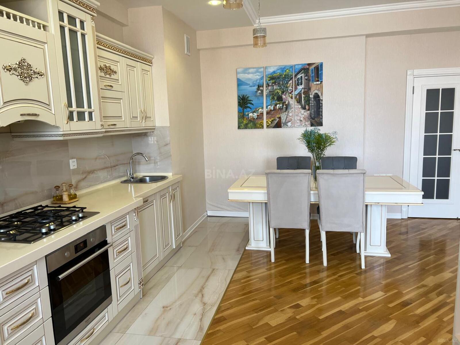 Mərtəbə: 5/33. Ümümi sahəsi 115.,1 geniş eyvan. 1 Plazma TV, KATV, Yüksək sürətli FİBER Optik internet - Wi-Fi. Mərkəzləşdirilmiş istilik, soyutma və havalandırma sistemi. Mətbəx mebeli və texnikası + qabyuyan maşın. Mətbəx-studiya. 2 s/q (cakuzi, duş–kabinə). Camaşırxana. 3 sürətli və səssiz liftlər, 24 saat mühafizə olunan geniş həyəti, müşahidə nəzarət kameraları, 3 mərtəbəli yeraltı avto dayanacaq.
