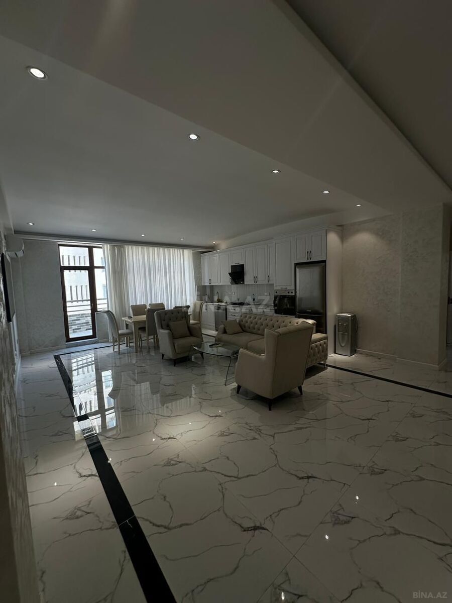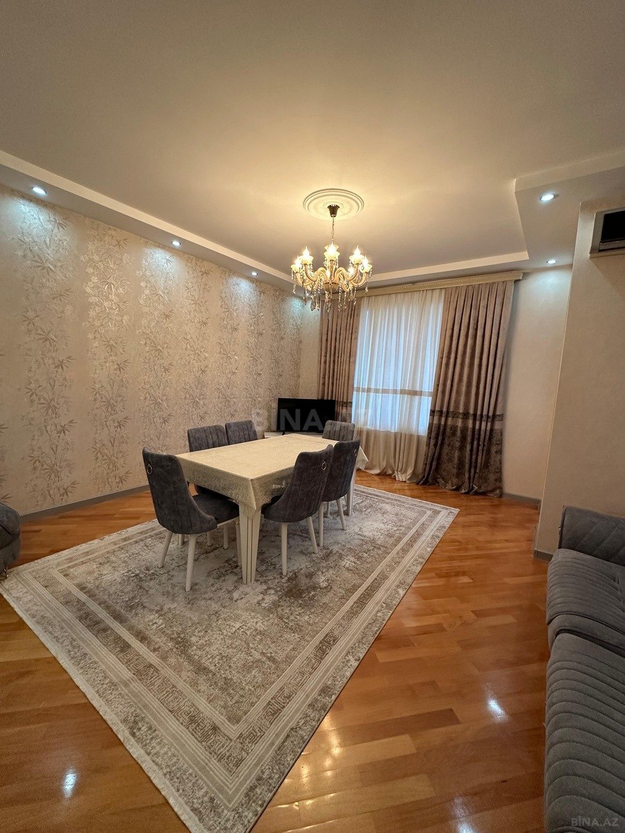 160 m² sahəsi olan mənzil 8 mərtəbəli yeni binanın 7-ci mərtəbəsində yerləşir. Mənzil tam şəkildə mebellə və bütün zəruri məişət texnikası ilə təchiz olunub.