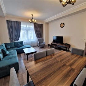 Təmiz, işıqlı və komfortlu mənzil kirayə verilir. Mənzil əşyalarla təmin olunub (yataq, divan, paltaryuyan, soyuducu, kondisioner və s.). Kombi sistemi və yüksək sürətli internet mövcuddur. Kommunal xidmətlər ayrı ödənilir.