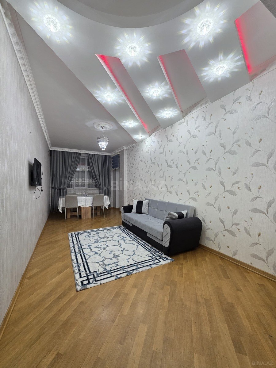 3 otaqlı, 95 m² sahəsi olan təmirli mənzil kirayə verilir. 21 mərtəbəli binanın 11-ci mərtəbəsində yerləşir. İnfrastruktur baxımından əlverişli – metro, dayanacaq, market və digər obyektlər yaxınlıqda. Binada mühafizə və lift mövcuddur.