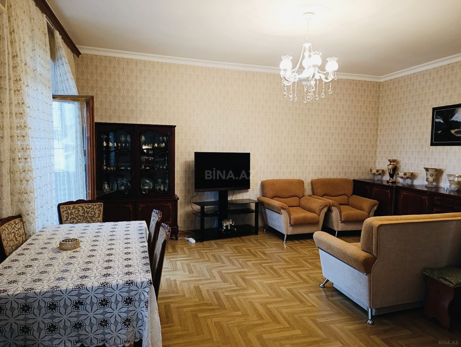 Seherin merkezinde Axundov baqinin yaninda Iceri weher metrosuna piyada yuruw mesafesinde Stalinka layiheli binada tam temirli resmi 3 otaqli menzil satiwa teqdim olunur.Menzil yelcekendir otaqlar ayri isdiliy sisdemi konbi iki eyvani var biri heyete digeri Nizami kucesine baxir.Sekiller menzile mexsusdur etrafli melumat ucun elaqe saxliya bilersiz wirketin xidmet haqqi 1% tewgil edir.
