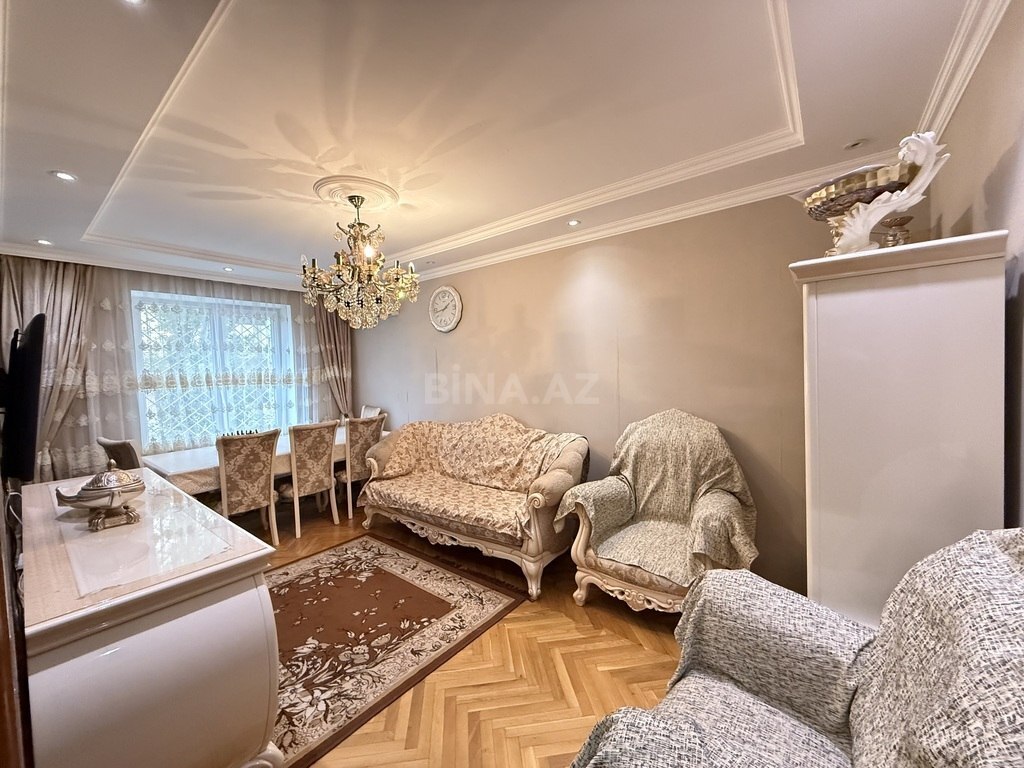 Sheherin merkezi, Sahil m/s v e Sahil baginin yani, R. Behbudov kucesi, arxitektur binada, umumi sahesi 80 kv m olan 3 otaqli menzil satilir. Mertebe 4/2, yaxsi temir, doseme parket, metbex studiya, qurasdirilmis metbex mebeli, qaz, su, isiq daimidir, istilik sistemi kombi. Butun senedler qaydasindadir CIXARISH var. Yaxinliqda usaq baxcasi, mekteb, dayanacaq, market ve diger iashe xidmeti obyektleri yerlesir.