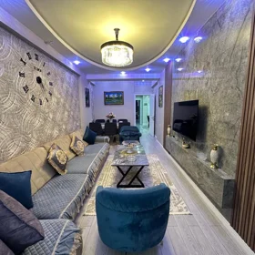 Xahiş edirəm diqqətlə oxuyun. Maklerlər bu evi elana qoysalar inanmayın.Öz evimdi. Makler deyiləm. 1 otaq və mətbəx birləşdirilib və ev 4 otaqdan 3 otağa çevrilib. 1 geniş zal(50kv) və 2 yataq otağı var. Geniş dəhliz var. Bütün ev ən yüksək materiallarla təmir edilib. Tam əşyalı satılır. İşıq və kombi sistemi mükəmməl çəkilib. Parket palıddı. Kafel metlax Türkiyə istehsalıdı. Elektrik sistemi Hilal elektrik. Mətbəx mebeli Türkiyə istehsalıdı və 13000manata alınıb. Digər mebellər də Türkiyə istehsalıdır. Jakkuzi var, Italyan istehsalı.
