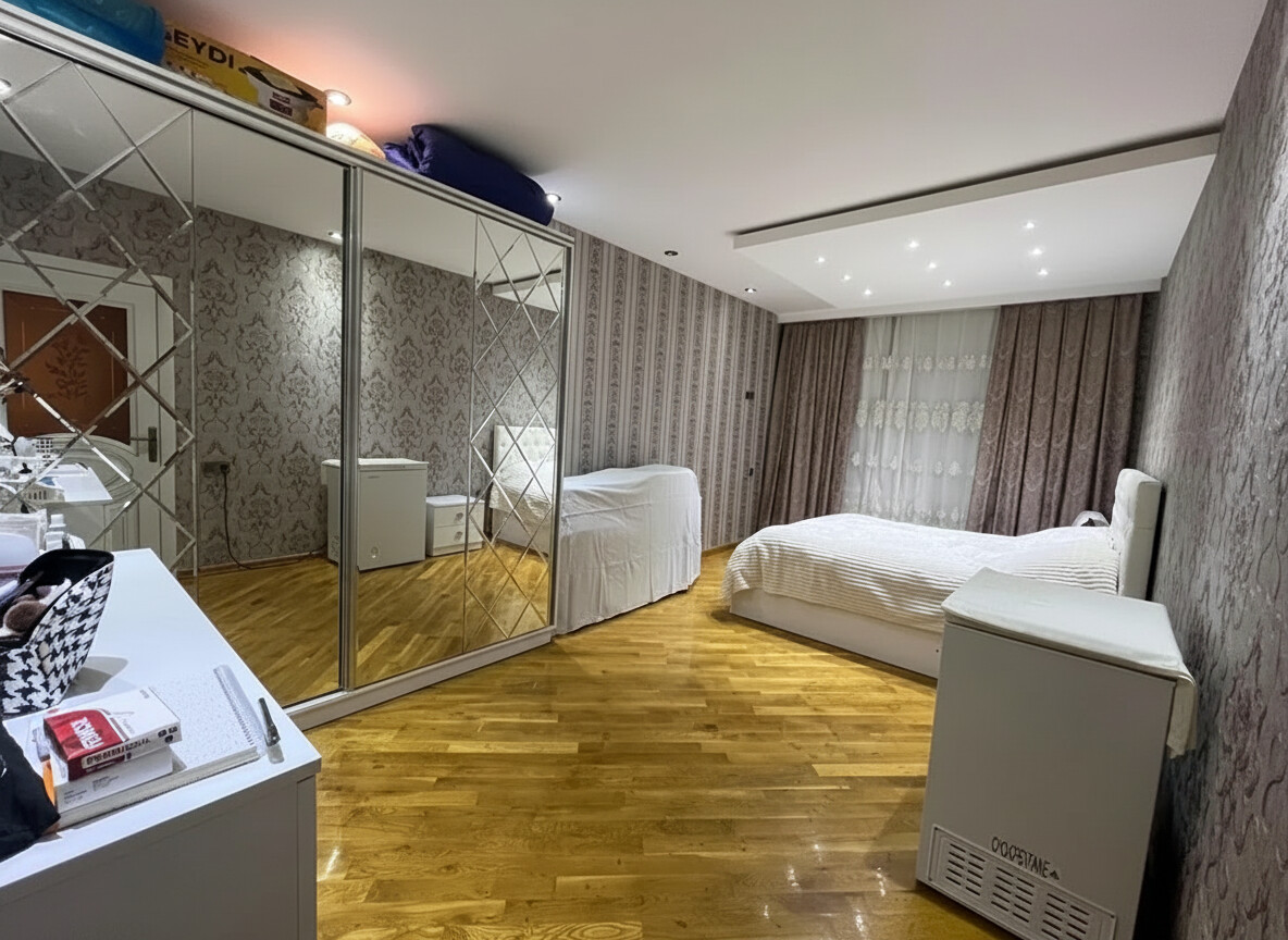 - Yataq otağı: geniş çarpayı, tumbalar, böyük güzgülü şkaf