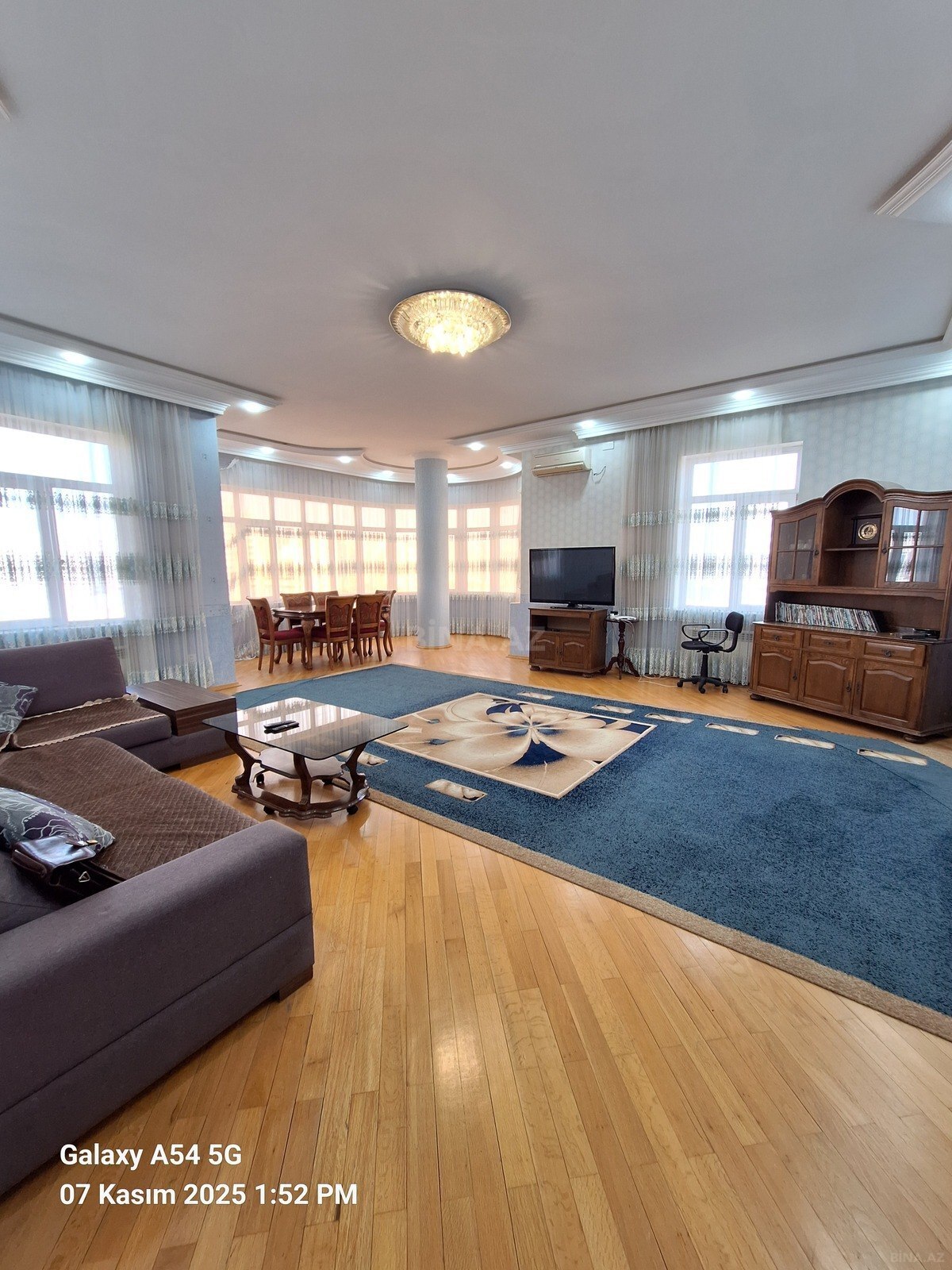 Geniş panoramik pəncərələrdən şəhər mənzərəsi açılır.