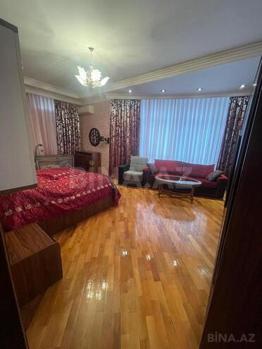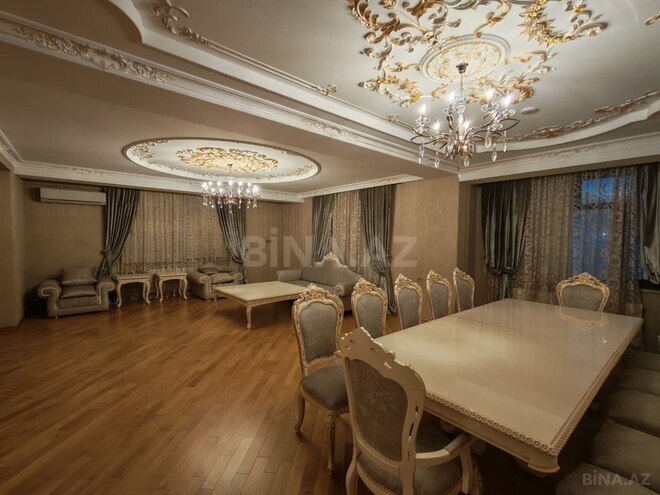 Mərtəbə: 16/24. Ümümi sahəsi: 240 kv.m. Hündür tavan, parket və mərmər döşəmə. 2 eyvan. Mənzil yelçəkəndir! KATV, Yüksək sürətli FİBER Optik internet - Wi-Fi, 5 Plazma TV (hər otaqda + mətbəxdə). Mərkəzi istilik sistemi, 5 split-kondisionerlər. 3 s/q (duş-kabinə). QARDEROB otağı. Quraşdırılmış mətbəx mebeli və texnikası (qabyuyan maşın). CAMAŞIRXANA. Mühafizə olunan həyəti, konserj-xidməti, 3 sürətli lif ...
