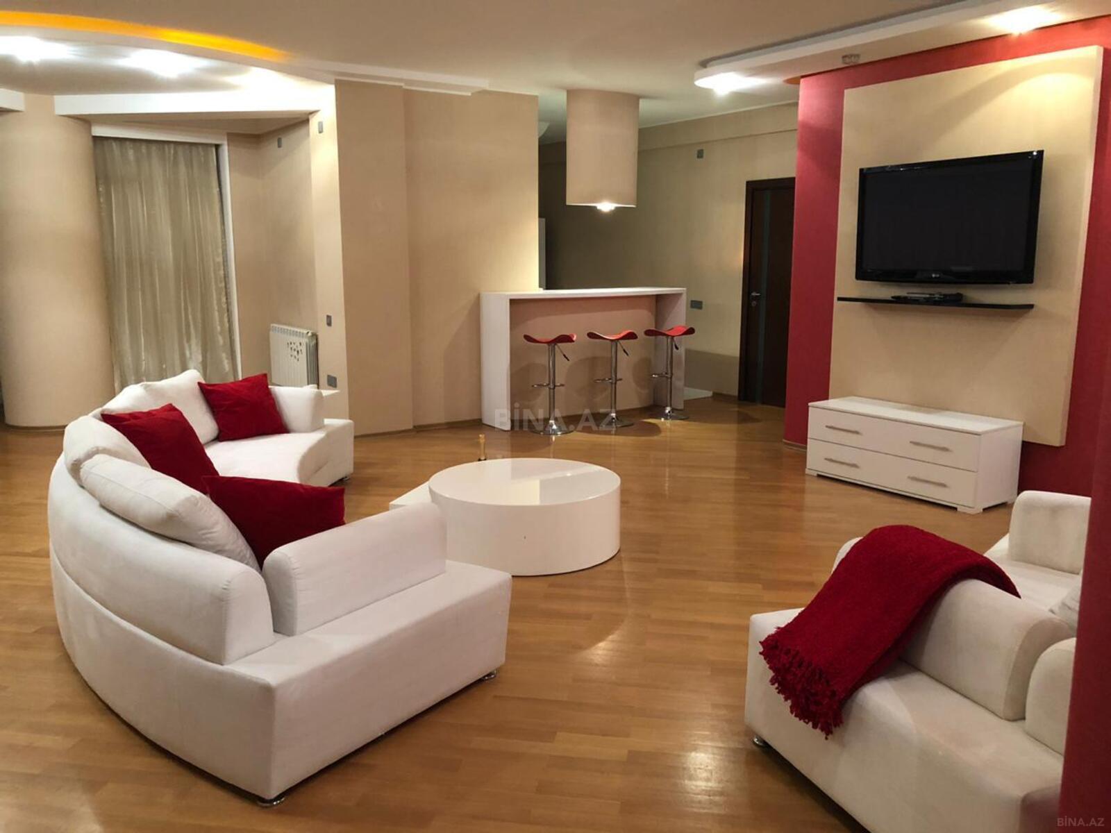 Mərkəzdə, R. Behbutov küç., Milli Bankın yanında 4 otaqlı mənzil icarəyə verilir. Yeni tikili, sahəsi 180 kv.m. Böyük işıqlı otaqlar. Əla təmirli, hər şəraiti var,yumşaq qonaq otağı mebeli, yataq dəsti, mətbəx mebeli, paltar yuyan maşın, soyuducu, mikrodalğalı soba, split-kondisioner, TV plazma, KATV, surətli İnternet. Daimi isti soyuq su. S/q əla vəziyyətdə, duş kabina. 2 lift. Mühafizə olunmuş ərazi. Yaxınlıqda park, məktəb, uşaq bağçası, avtobus dayanacağı