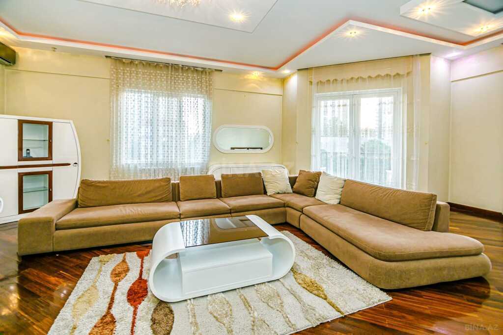 Bu mənzil şəhərin ən nüfuzlu və mərkəzi küçələrindən birində – Resid Behbudovda yerləşir. 250 m² sahəyə malik geniş planlaşdırılmış mənzil yüksək keyfiyyətli materiallarla təmir edilib. Hər otaq böyük pəncərələrə malikdir, gün işığı bol düşür və gözəl şəhər mənzərəsi görünür.