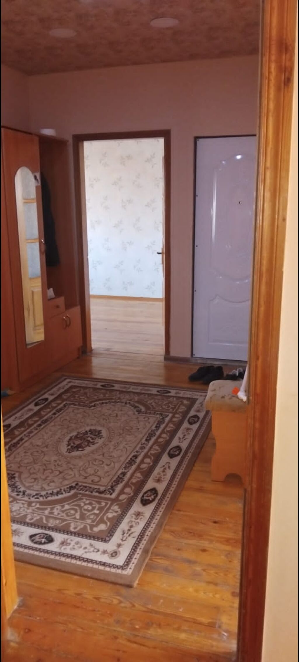 - Girişdə dəmir qapı, dəhlizdə paltar dolabı və xalça.