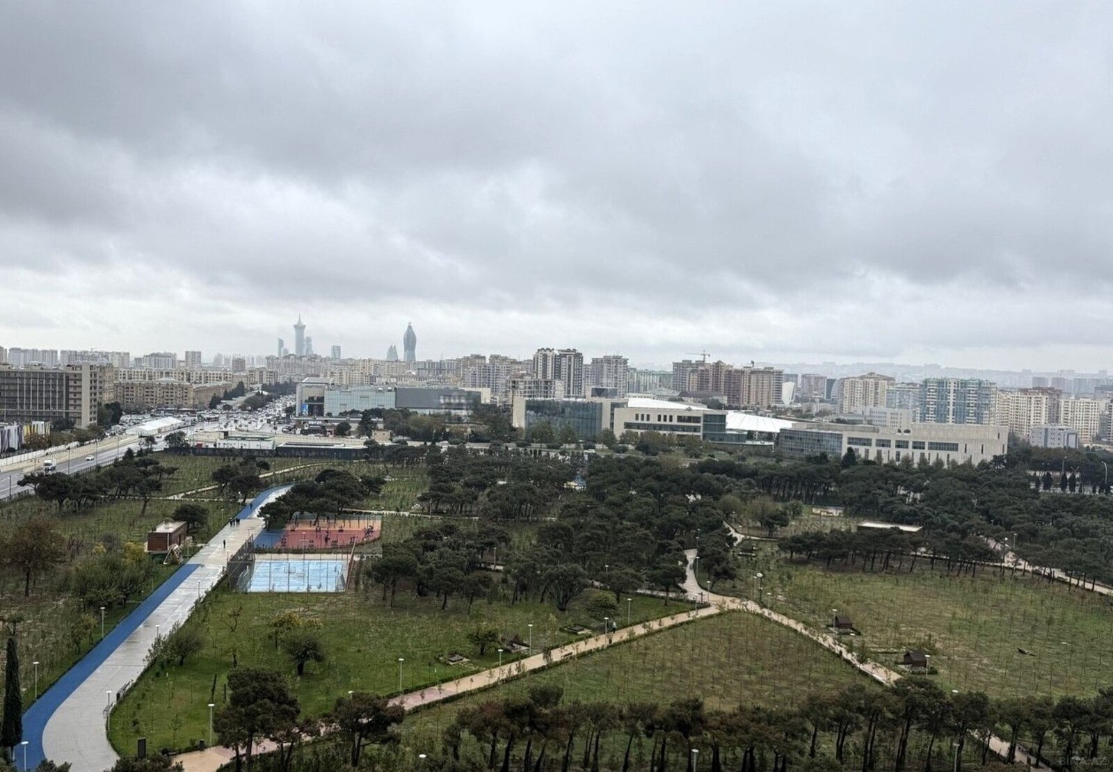 Yeni tikilmiş prestijli "Main mtk" 2 hektar qapalı həyəti olan kompleksində gözəl mənzərəsi olan mənzil satılır.