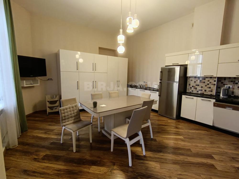 XIX sonu və XX-ci əsrin əvvələrinə aid olan qədimi binada 5 otaqlı mənzil kirayə verilır. Mənzil 3 yataq otağı, 1 yeməy otağı və 2 sanitar govşağdan ibarətdir. Mənzil tam təmirlidir və mebel ilə təchiz olunub. Ev Zərifə Əliyeva küçəsində, Rəsul Rza küçəsinin kəsişməsində, Emporio Armani mağazasının yanında yerləşir. Mənzildə hündür tavanlar, küçədən girişi var. Kirayə qiymətinə vergi daxil deyil.