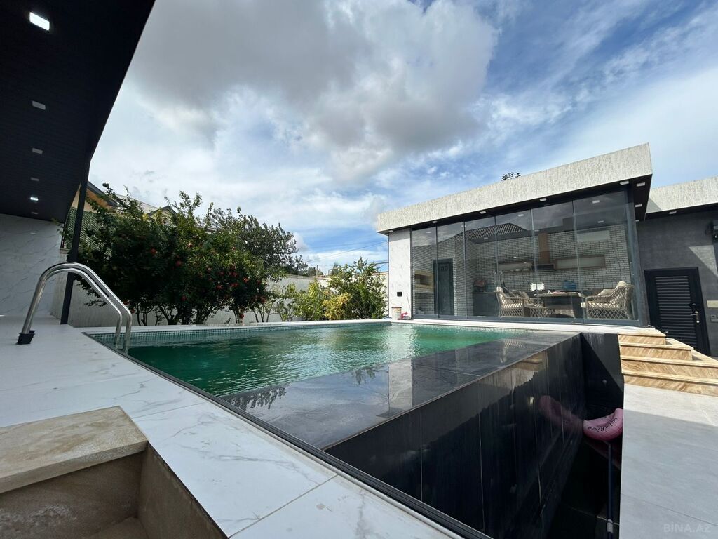 Həyətdə 7m uzunu 4m eni hovuzu