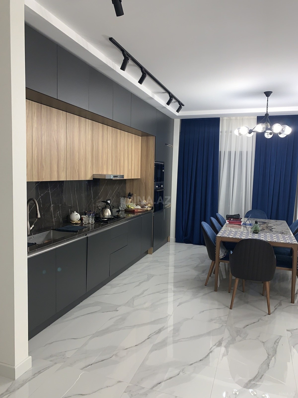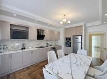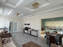 Ev ela temirlidir. Zal studia tiplidir. Her shey tezedir. Qurulan mebelleri (metbex, qarderob, shkaflar) ve butun texnikani (choxu Bosch firmasidir) ustunde satiriq. Hereketli mebeller gedecek. Evde lustra ve perdeler de hazir taxilmish veziyyetdedir. Hamamda butun aksesuarlar movcuddur. Kombi var, zal, korridor ve hamam isti doshemedir. Kandisionerler Mitsubishi-dir ve merkezleshmish shekildedir. Maraqlanan shexslerden telefon nomresine saat 6-dan sonra zeng etmeleri xahish olunur. Evin sahibiyem.