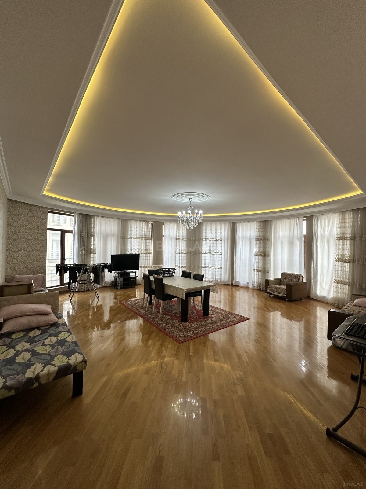 Təbriz küçəsi Nəriman Nərimanov metrosu, 28 May metrosu, Gənclik metrosunun yaxınlığı, Təhsil Nazilriyi, Çanaqqala restoranın yanı, Bravoynan üzbəüzdə, Su Sonası şadlıq sarayı, Rahat marketin arxası 11 mərtəbəli binanın 6-cı mərtəbəsi Ay Bir yaşayış kompleksinə məxsus binada mənzilin ümumi sahəsi 190 kv m olan 4 otaqlı təmirli əşyalı mənzil. 1400 manata kirayə verilir. Mənzildə üç geniş yataq otağı, zal, mətbəx, iki sanuzel, iki sanitar qovşağı mövcuddur. Mənzil yeni təmirdən çıxıb, təmirdən sonra yaşayış olmayıb. Mənzil maşuruta, market, məktəb, baxça bir sıra iaşə obyektləri var. Maraqlanan şəxslər buyurub müraciət edə bilər.