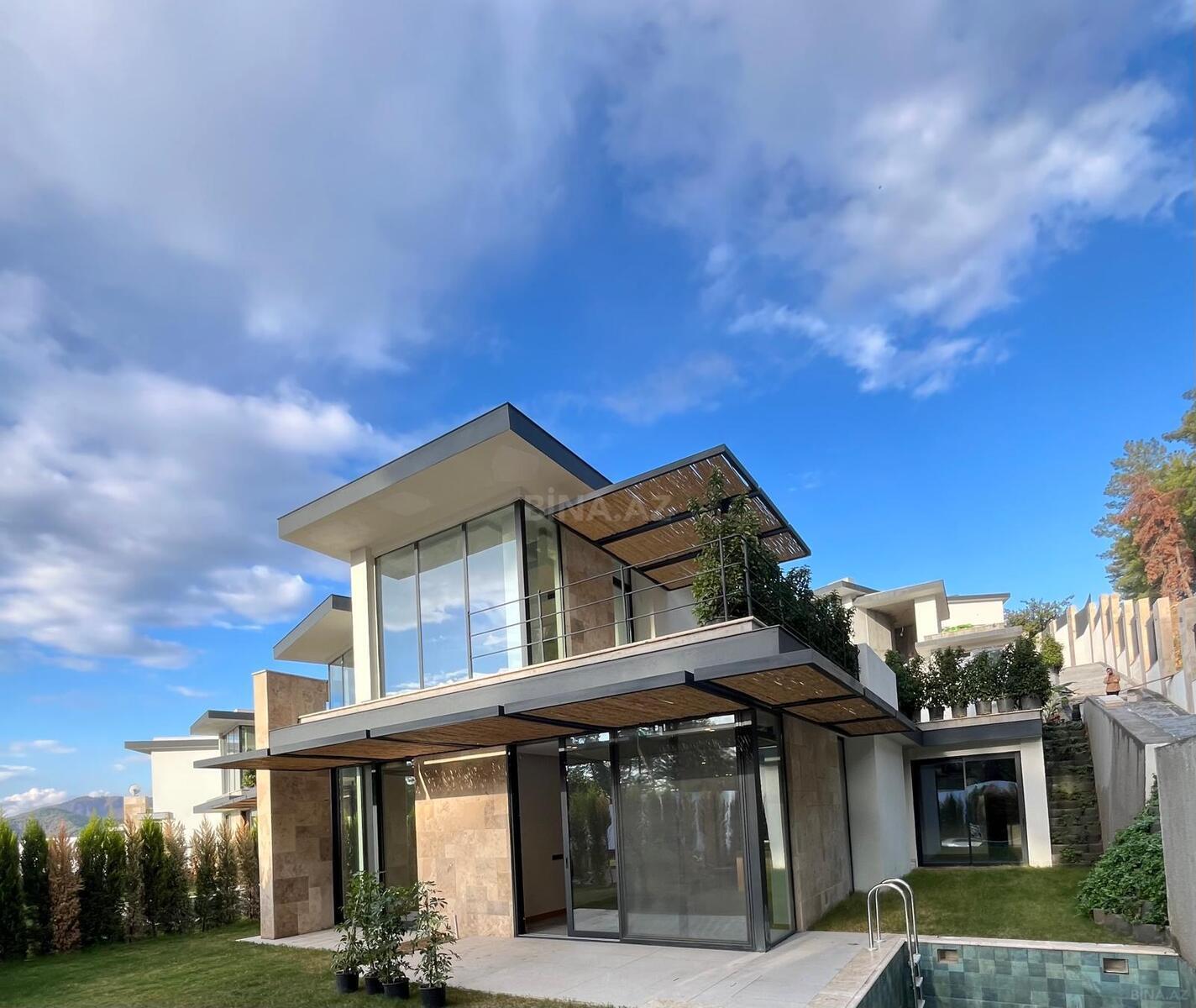 - Təsviri: 4 mərtəbəli villadır. Həm ticarət (otel, uşaq bağçası və s), həm də şəxsi yaşayış üçün nəzərdə tutulub. Həyətində müxtəlif ağaclar, barbekü sahəsi, 15 metr uzunluğunda besedka və hovuz var. Şirkət haqqı 1% (alıcıdan).