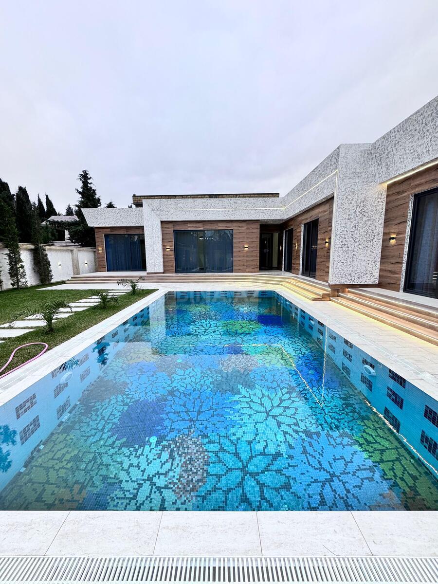 Bakı Bağları şirkəti sizə ekoloji təmiz Mərdəkan qəsəbəsində Bravo supermarketin yaxınlığında 7 Sotda 1 mərtəbə 250 kv.m 5 otaqlı super bağ evini təklif edir. Bağ evi zal, mətbəx, 4 yataq otağı, holl və 4 sanuzeldən ibarətdir. Otaqlarda asılmış pərdə və lyüsturları, dolabları, hündür tavanları, mebelli mətbəxi, duş kabinalı sanuzeli, quraşdırılmış işıqlandırma sistemi var. Ev yüksək zövq və keyfiyyətlə təmir olunub. Su, qaz, işıq daimidir. İstilik sistemi kombidir, isti döşəməsi var. Həyətində geniş filterli daşma hovuzu, şəlaləsi, manqalxana, maşın saxlamaq üçün yer, besedka, pultla idarə olunan darvaza, oturacaqlar, dekorativ ağacları və gülləri, su anbarı, sanitar qovşağı, sensorlu gecə i ...