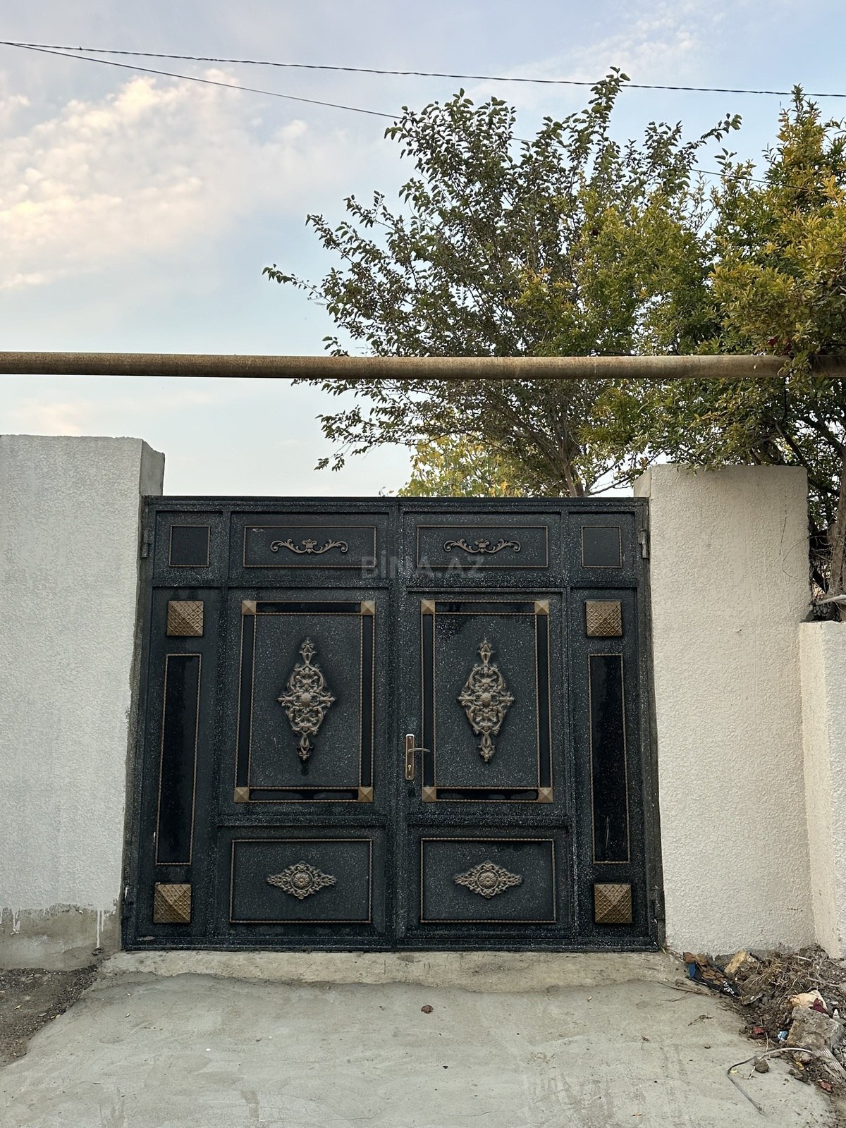 - Pəncərələrdə dəmir barmaqlıqlar, metal giriş qapısı