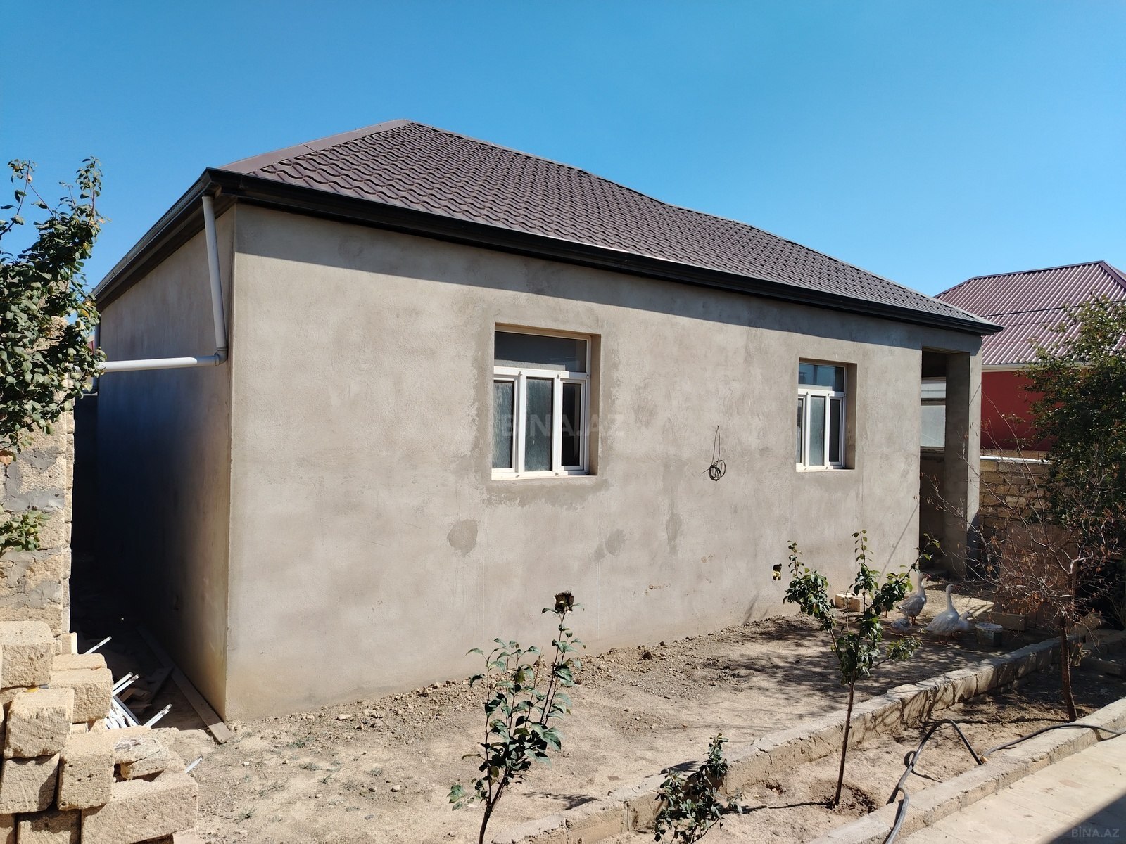 Məhəmmədlidə Real İnşaata çatmamış yol kənarı şəxsi tikili 2.5 sot torpağın içində əşyalı 3 otağlı yaşayışlı tam təmirli həyət evi satılır. Tikili sahəsi 100 kvm. Komunallar quraşdırılıb qaz su işıq daimidir. Mətbəx mebeli hamam aksesuarları quraşdırılıb. Həyətində əkin üçün torpaq sahəsi ayrılıb. Fundamenti betonu kəməri var. İstilik sistemi kombidir radiatorlar quraşdırılıb. Ev kürsülüdür və dört tərəfdən dairəvi qoşa daşla inşa olunub. Sənədi kupça , Qiymətlə razılaşma ev yiyəsi tərəfindən olacaq.