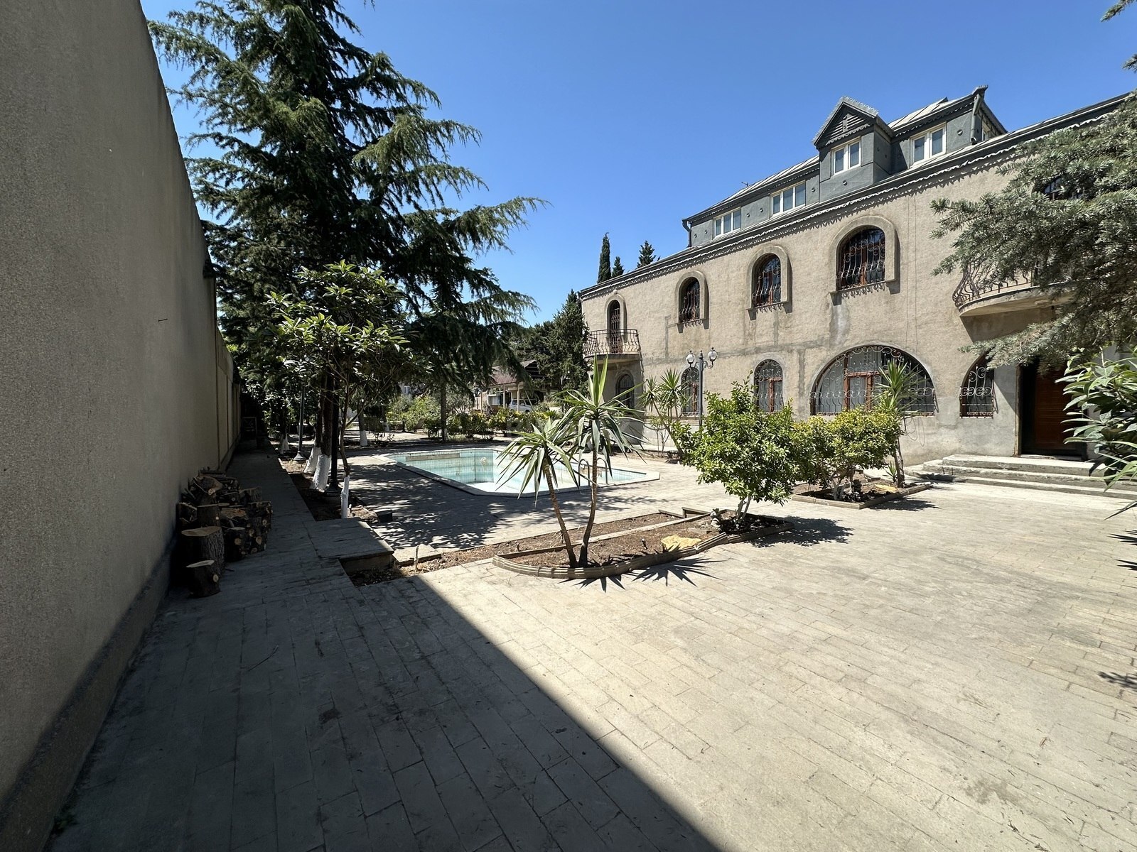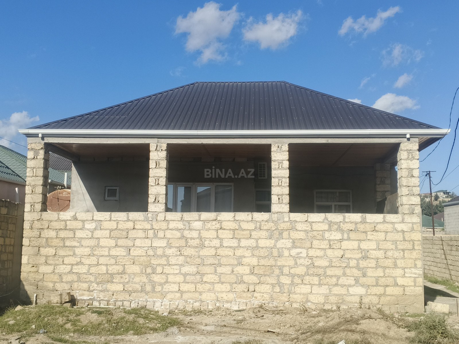- Təkmərtəbəli, daş hasarlı həyət evi