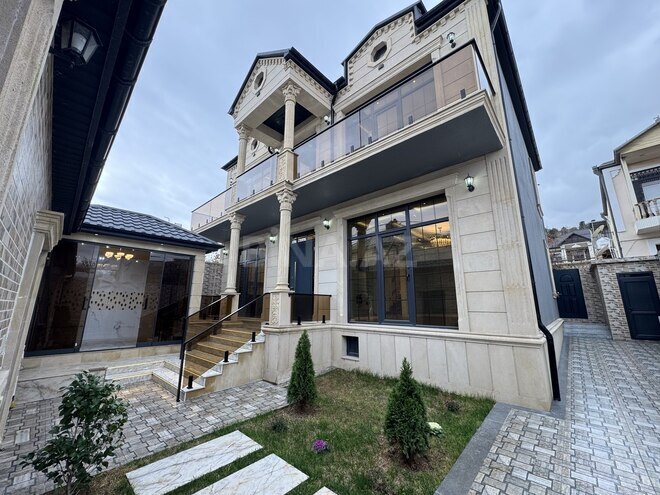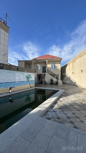 8 sot torpaqda 2 mertebeli Hovuzlu ve bisetkali.Tam esyali her sey qalmaq serti ile satilir.1 ci mertebede Yemek otagi,Studio tipli zal metbex ve sanuzel qovsagi.2 ci mertebede 3 yataq otagi, geyinme otagi ve boyuk sanyzel qovsagi var.Her bir esyalar baha qiymete alinib.Her mertebenin oz kombisi var.heyetinde yay terasi ve yay qis bisetkasi var. Butun senedler qaydasindadir.Su Isiq qaz Daimidir.Tam etrafli melumat ucun zeng ede bilersiz.