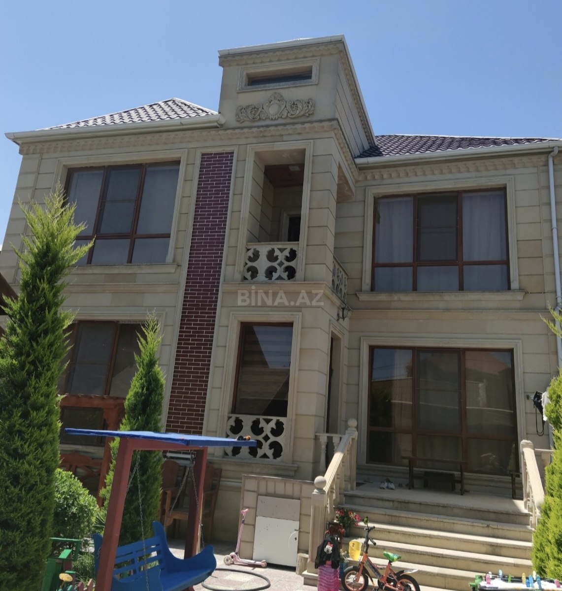 Mərdəkan-Buzovna Təzə yolda , Qoşa-Qalanın yaxınlığında, əsas trasdan 70 metr içəridə, Tam Təmirli, Əşyalı, Hovuzlu, Çıxarış sənədli 2 Mərtəbə Bağ Evi satılır. 4 sanitar qovşağı var ( 3-ü evdə yataq otaqda və digər , 1-i həyətdə ) Fotolarda görsənən bütün əşyalar mebellər hamısı qiymətə daxildir. Sahəsi 6 sotda 220 kv.m ev + əlavə olaraq 30 kv.m həyət mətbəxidir. Pult ilə darvazası, kamera sistemi, domafonu, söhbətgah və əlavə həyət mətbəxi, manqalı, 2 ədəd su çəni, internet wi-fiyı, isti döşəməsi, kombi sistemi və otaqlarda kondisionerləri mövcuddur. Əsas trasdan küçəyə girəndə 5-ci bağdır..: Ətraf bağ evləri ilə yaşayışlı ərazidir. Sahibindən satılır, vasitəçi deyilik