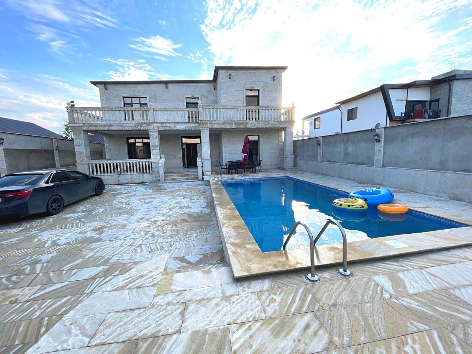 Продается новопостроенная и меблированная дача-дом в пос. Шувалан, 2.6 сот, 130 кв.м, 1 зал, 3 спальни 2 с/у, прачечная, отличный ремонт, светлые комнаты, теплый пол, отопит. система комби, бассейн с фильтром, беседка, резервуар для воды, вода, газ, свет, купчая, камеры видеонаблюдения и домо ...