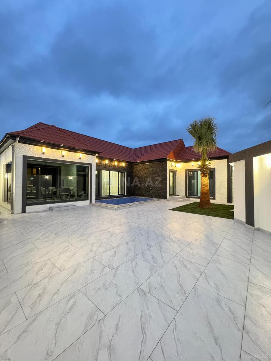 Həyətində geniş 2 paltar dəyişmə və hamamlı istilik sistemli filterli hovuz, manqalxanası, təndir, 8 nəfərlik söhbətgah (besedka), 50 nəfərə qədər qonaq üçün (açılıb bağlanan, istilik keçirməyən xüsusi şüşələrlə) yay-qış mətbəxi, qo ...