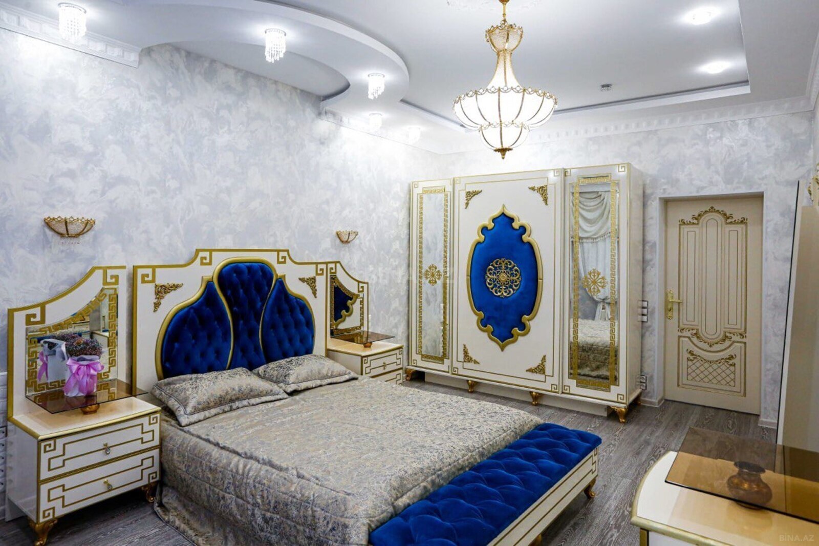Ev yüksək zövq və keyfiyyətlə təmir olunub. Otaqlarda asılmış çilçıraqları, işıqlandırma sistemi, holl və mətbəxdə isti döşəməsi, tam hazır sanuzelləri var.