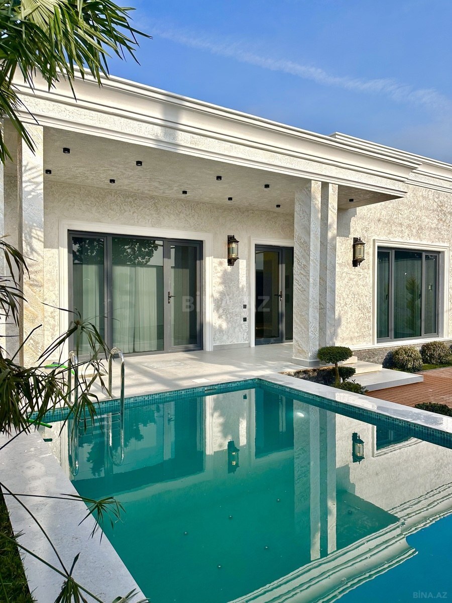Şüvəlan gəsəbəsi, Hacı Mövlan bağlarında 2.6 sotda yeni inşa edilmiş ƏŞYALI bag evi satılır, 130 kv.m, 1 zal, 3 yataq, çamaşırxana, 2 s/q, əla təmirlidir, isti döşəmə, kombi istilik sistemi, filterli hovuz, san/q, qaz, su və işıq daimidir. Təhlükəsizlik kameraları və domofon. Çıxarışı var. Bag yaşayış massivində yerləşir və il boyunca yaşamaq üçün yararlıdır. Yolu asvalt örtüklüdür.
